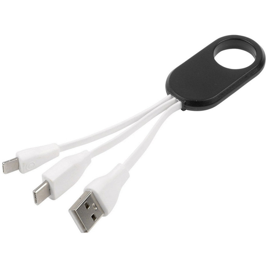 Як замовити Зарядний кабель 3-в-1 'Get Three' (Чорний) з логотипом від компанії Giftex: