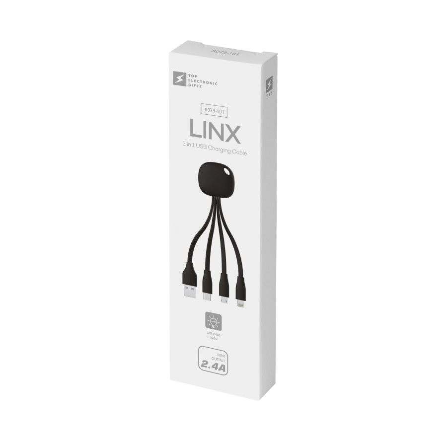 Зарядний кабель 3 в 1 з підсвідкою Linx, ТМ TEG (білий) з логотипом — замовлення виготовлення від компанії Giftex. Ми пропонуємо високу якість продукції, швидке виготовлення, вигідні ціни та знижки постійним клієнтам. Працюємо з доставкою в будь-яке місто України.