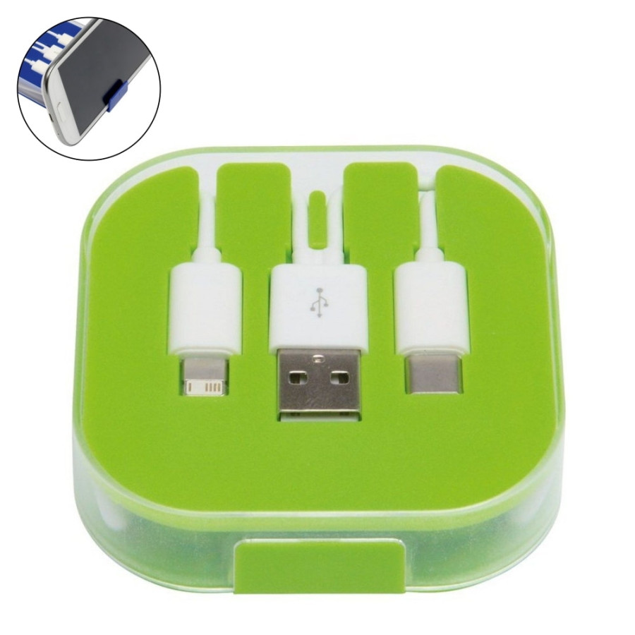 Замовити Зарядний кабель-перехідник 'Recharger' 3-в-1 (Світло-зелений)