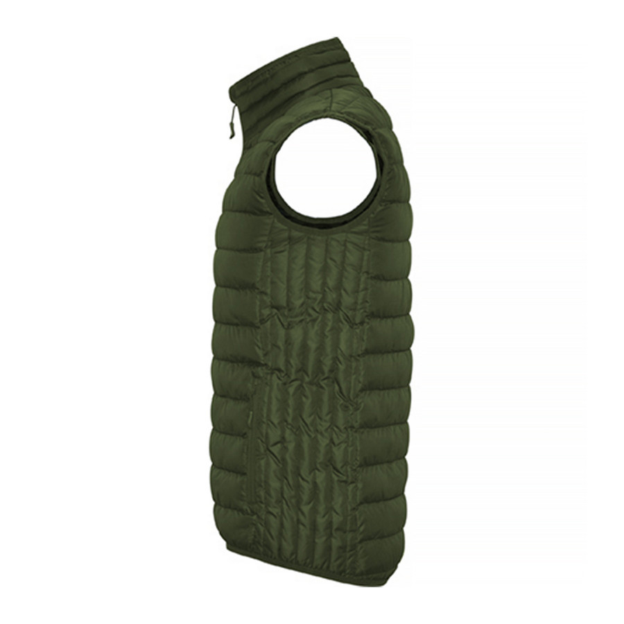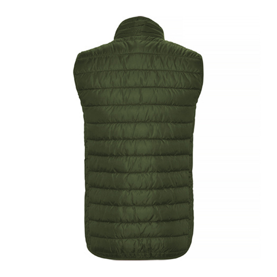 Чоловічий жилет, водовідштовхувальний та вітронепроникний 100% поліестер , дві зовнішні кишені , набивка 100% поліестер з ефектом пера, воріт високий з захистом для підборіддя, внутрішня підкладка поліестер. В комплекті мішок зі шнурком в який легко складається жилет.