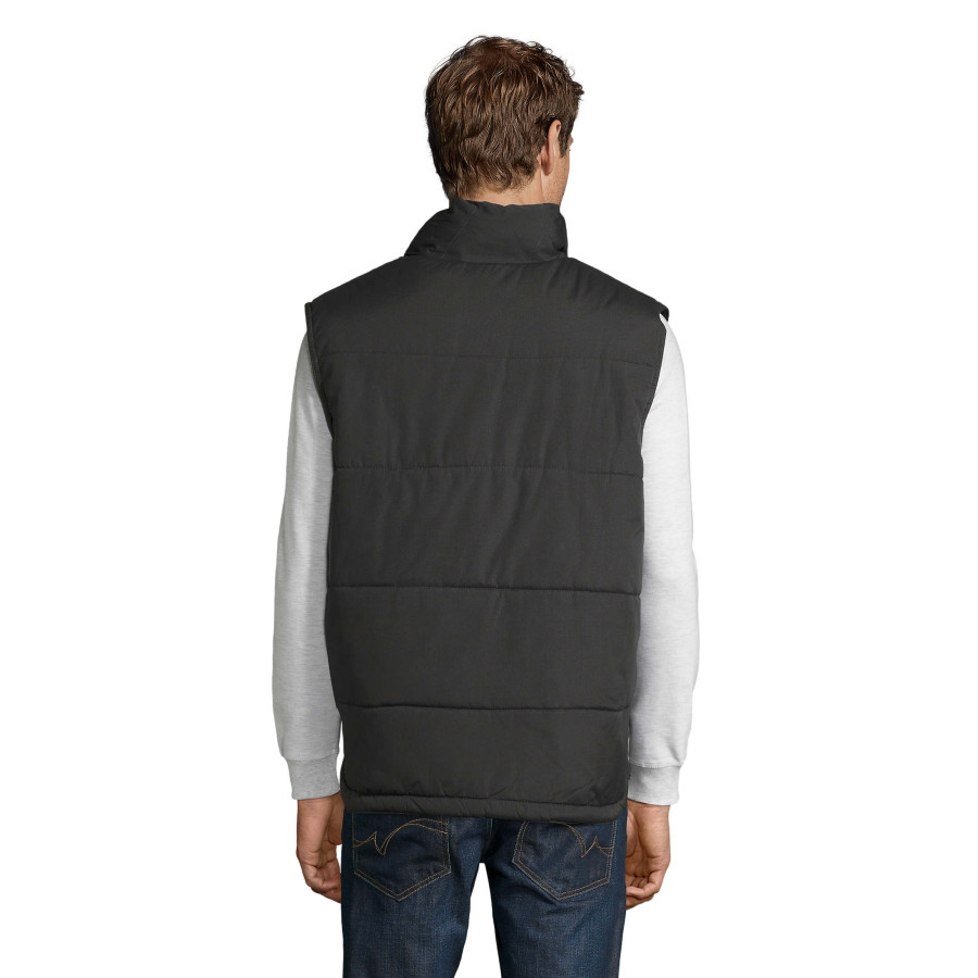 Жилет унісекс SOL'S VIPER. Стьобаний комір-стійка, безліч кишень, отвори для гарнітури в кишені і на комірі, звужена пройма рукавів для захисту від вітру, стягуюча резинка на талії. Матеріал: Мікроволокно з просоченням ПВХ, підкладка з поліестеру 190T, водонепроникна м'яка текстура.