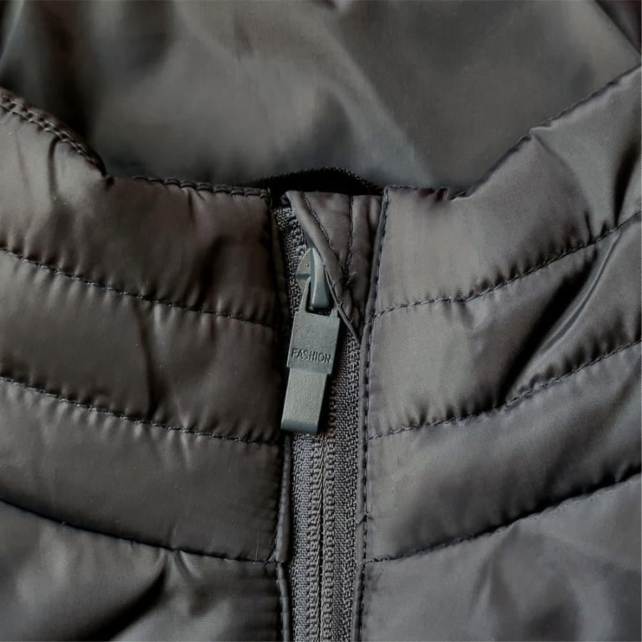 Для пошиття жилета використали вітро- й водовідштовхуючу тканину зі складом 100% поліестер. Набивка – 100% поліестер.