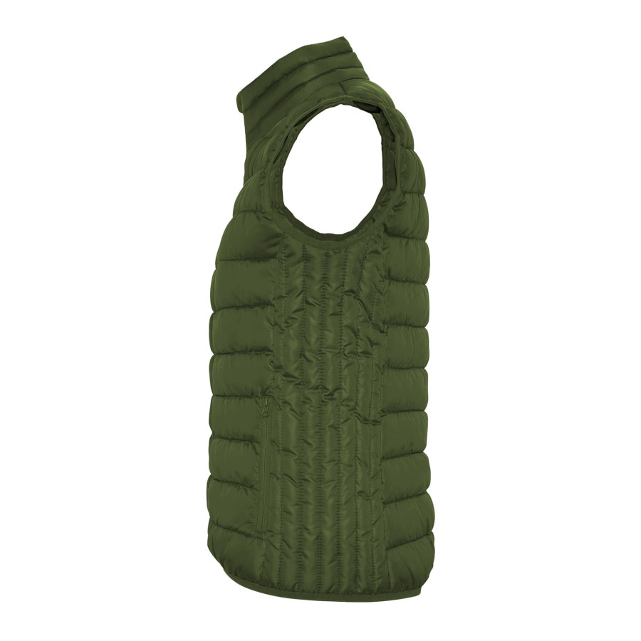 Жіночий жилет, водовідштовхувальний та вітронепроникний 100% поліестер , дві зовнішні кишені , набивка 100% поліестер з ефектом пера, воріт високий з захистом для підборіддя, внутрішня підкладка поліестер. В комплекті мішок зі шнурком в який легко складається жилет.